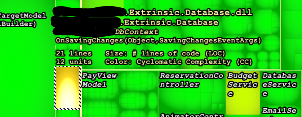 The "Metrics" tab is again another great example of the tool usefulness; From there you can view "heated" areas of your code which has strong cyclomatic complexity. Here in my example, the following method is considered a bit more complex: